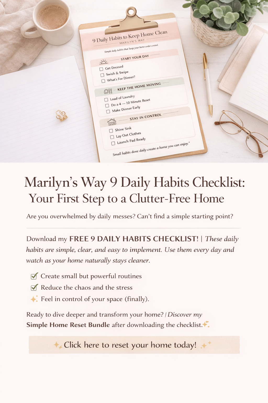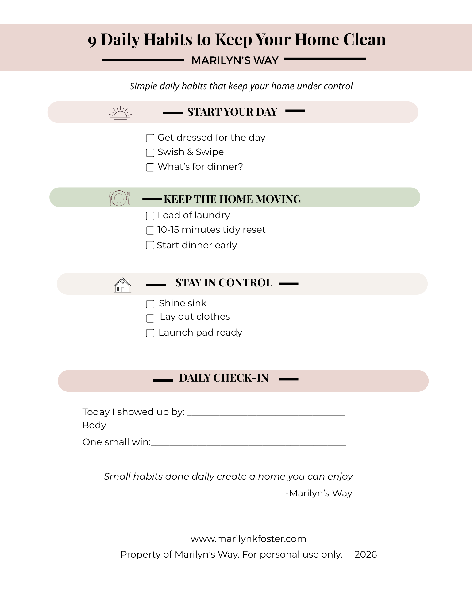 This is the exact foundation behind Marilyn’s Way—simple habits that keep your home under control.