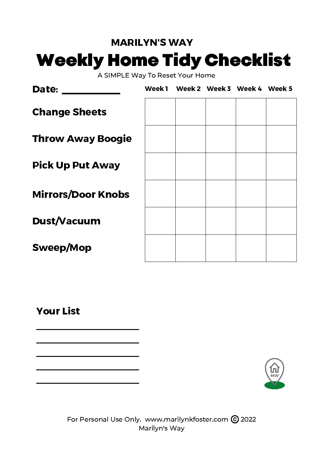 Wouldn’t it be nice to have a ‘Check List’ for the Weekly Home Tidy?